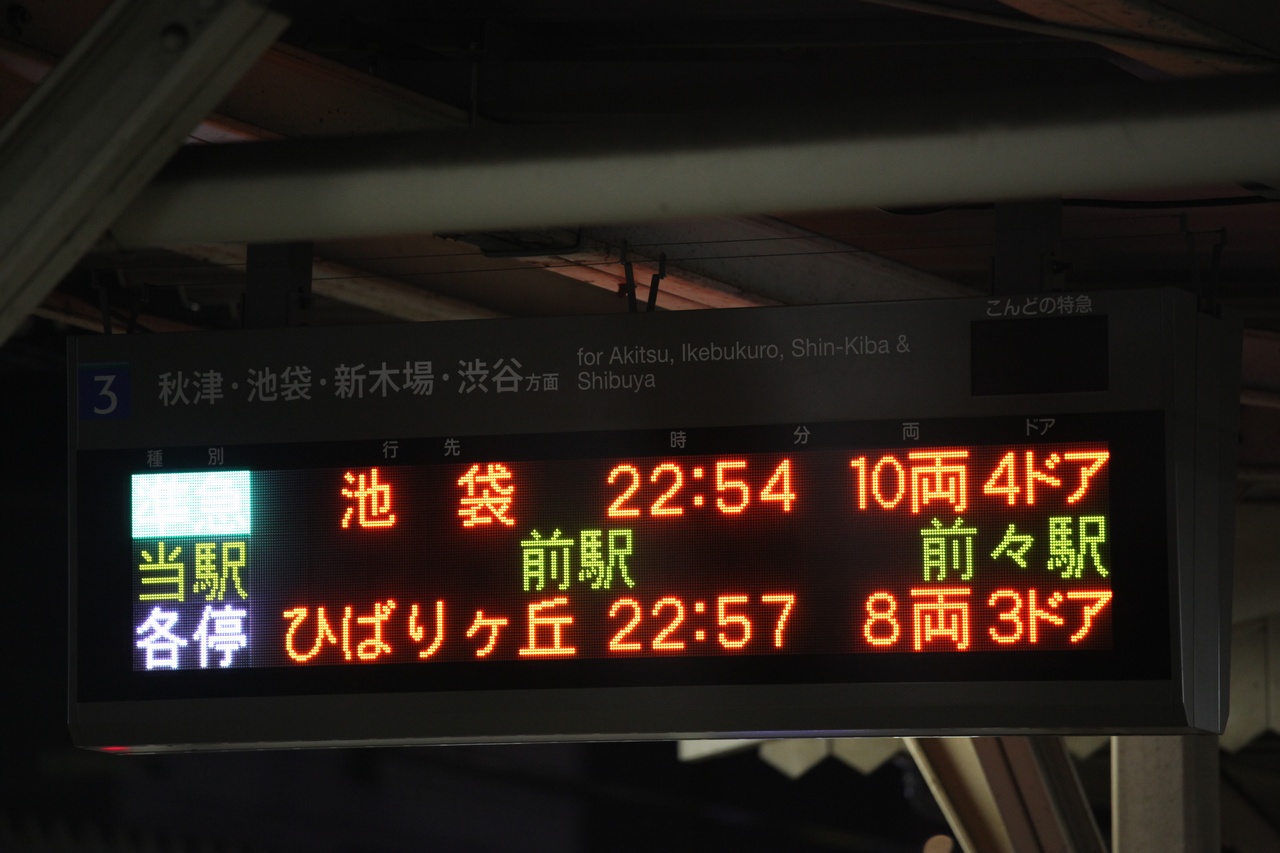 所沢行きの車種が分からなかったのですが、構内が明るい事もあり