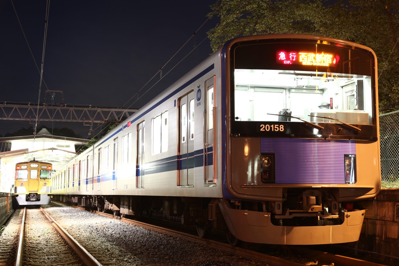 すっかり陽も落ちて、急行西武新宿行き。