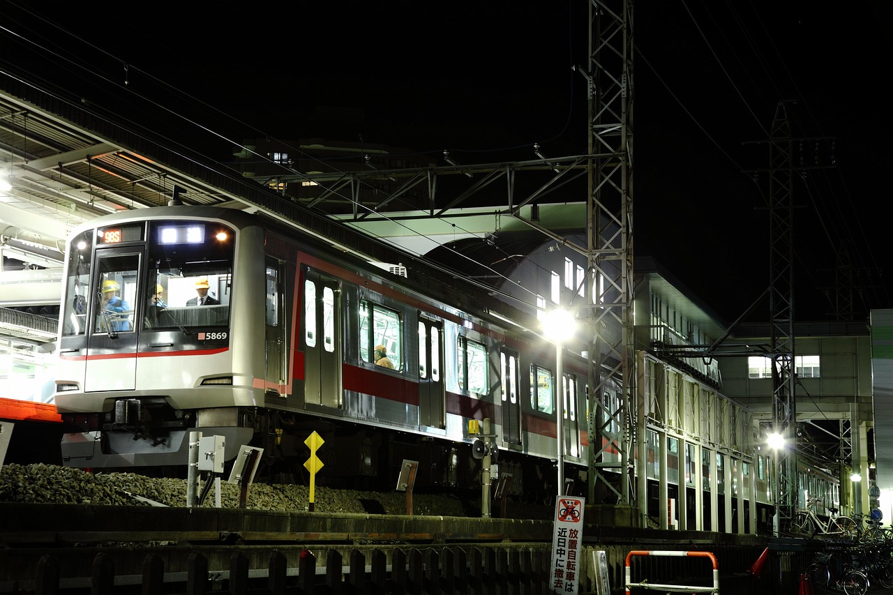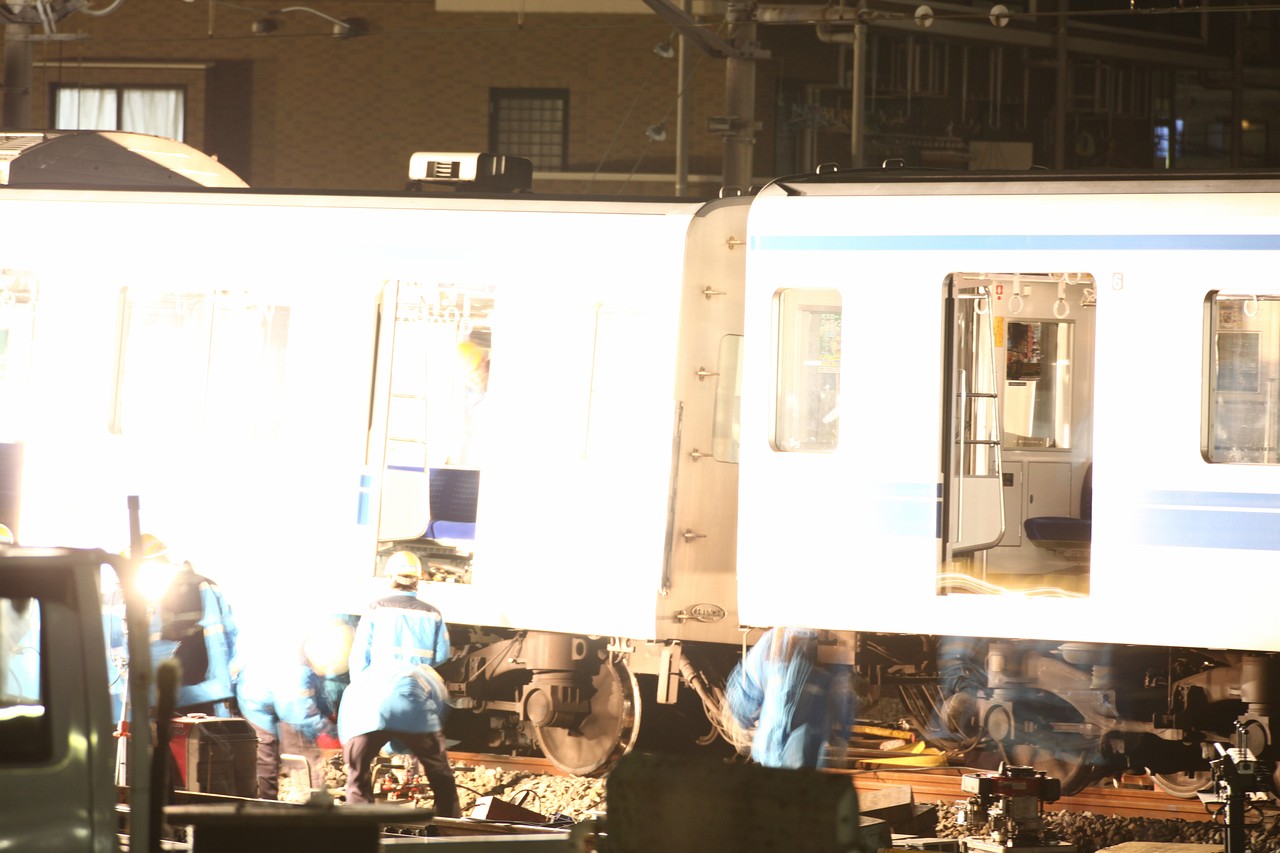 駅北側の大踏切手前で夜間留置となった2025F。